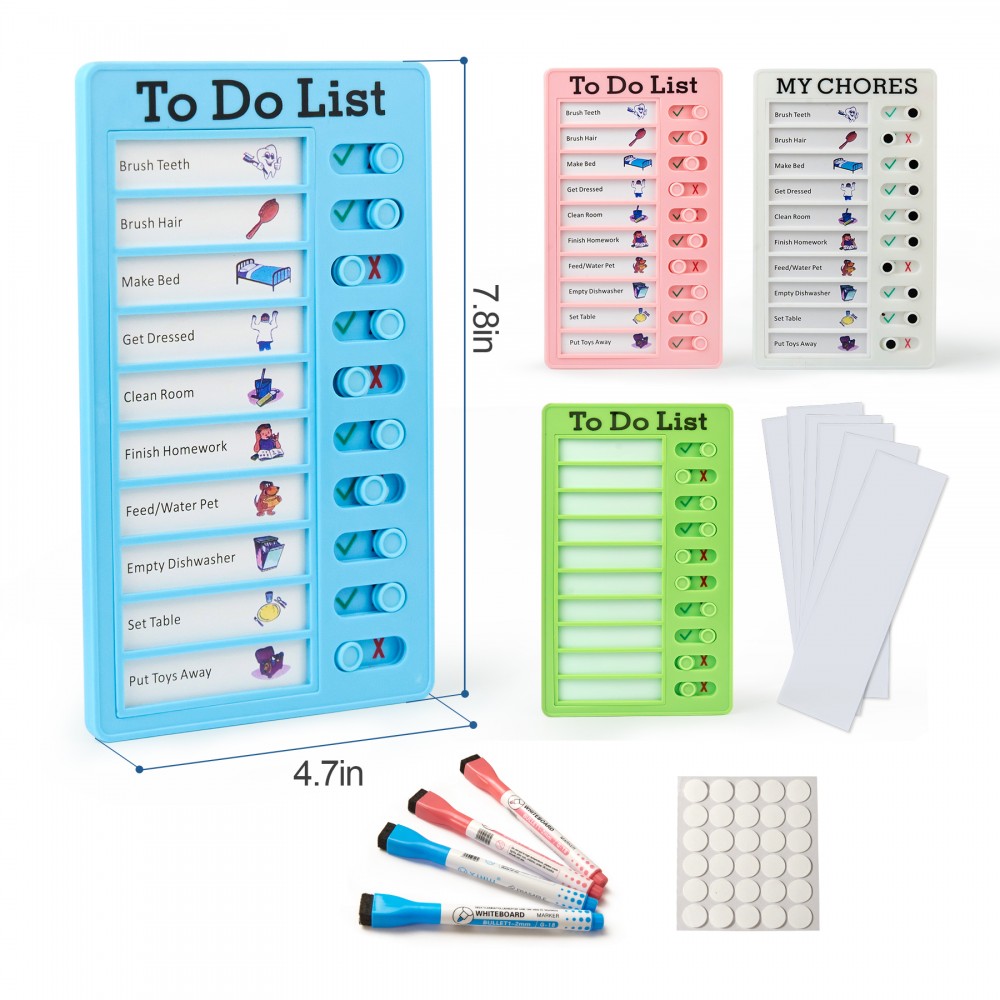 Chore Chart Board for Kids with Adhesive Pads,Kids ADHD to Do List.Helping ADHD Plan Household and Work tasks.4 Planner Boards, 4 Marker