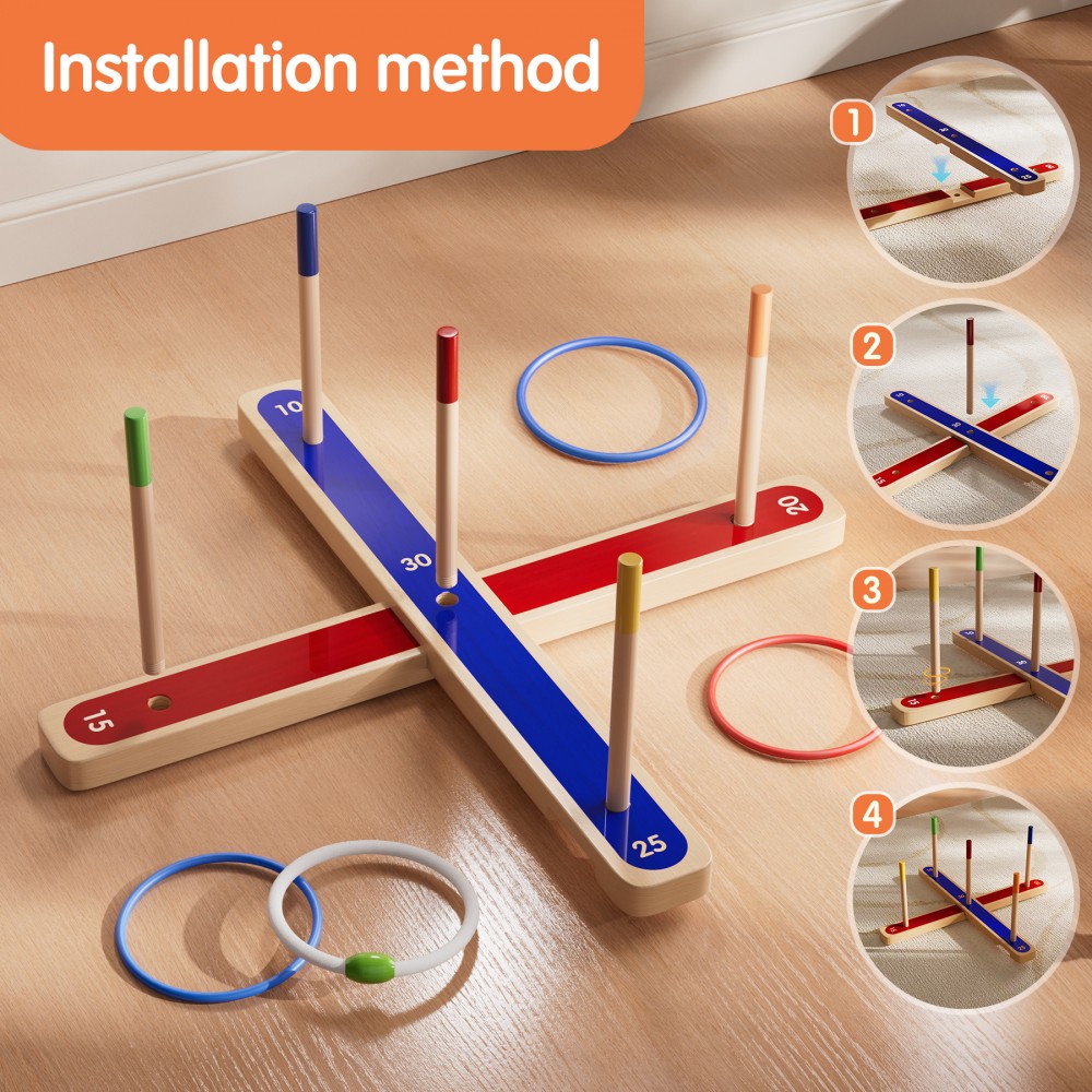 - Durable Wooden Base & Rustic Design – Made with strong wood and stable pegs, this outdoor play equipment blends rustic charm with long-lasting durability, perfect for lawn games, outdoor sports, and everyday backyard fun.