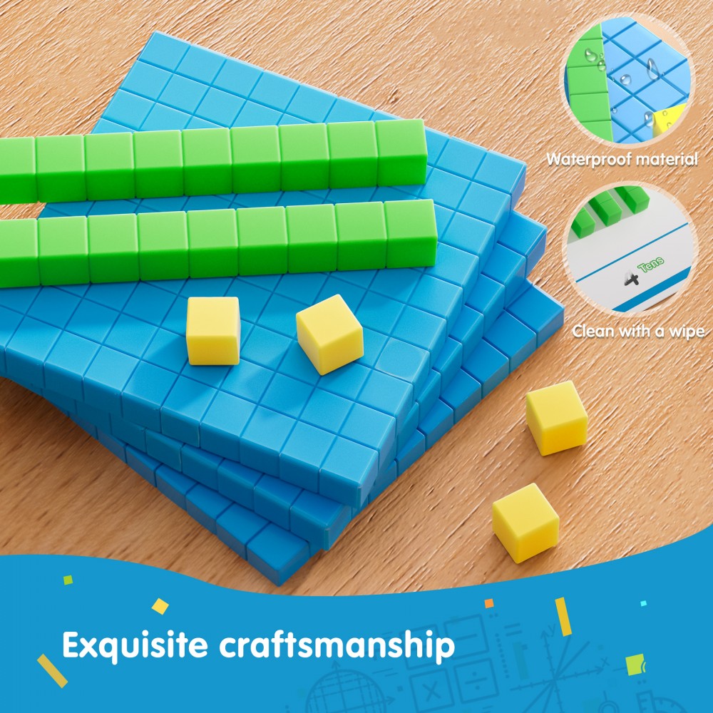 • 【Educational Base Ten Blocks Toys】It is the perfect size for a child's small hands.This linking cubes helpful for students to learn 10 concepts,place value,number sense, decimals, operations,addition, subtraction.