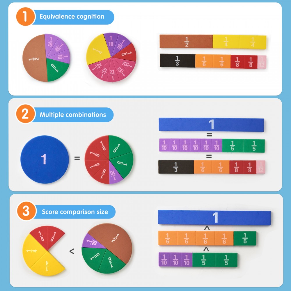 - 【Learning Fractions Visually】: It divides fractions equally into equal sizes. Children can visualize how big or small a fraction is.